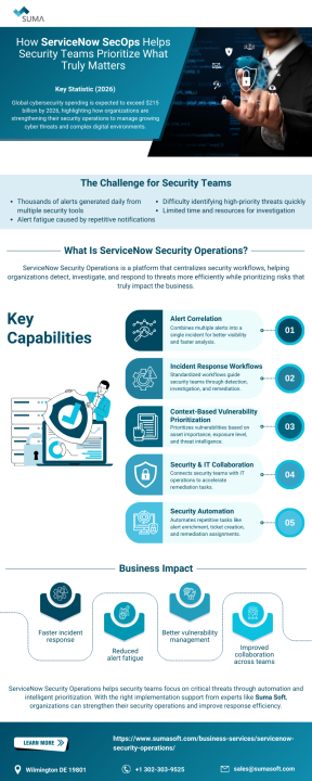 ServiceNow SecOps helps security teams cut through alert overload by correlating data, prioritizing real threats, and automating responses. It reduces alert fatigue, improves collaboration, and enables faster, smarter decisions for a more proactive cybersecurity strategy.