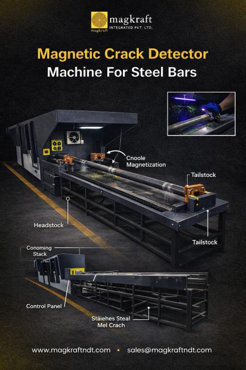 A Magnetic Particle Testing (MPT) Machine which is a remarkable non-destructive testing (NDT) device, detects surface and near-surface defects in ferromagnetic materials like iron and steel. It is a process that is both efficient and highly trustworthy.