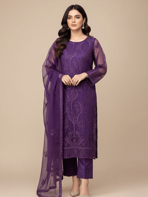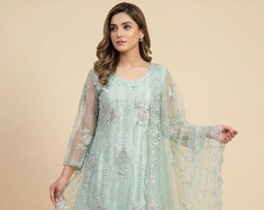The Aurora is a versatile Pakistani dress that transitions beautifully from day to night. With its soft fabric, elegant flow, and subtle detailing, this outfit is perfect for women who prefer timeless fashion with a modern touch. Aurora’s graceful drape and refined color palette make it a must-have for both casual sophistication and special events.