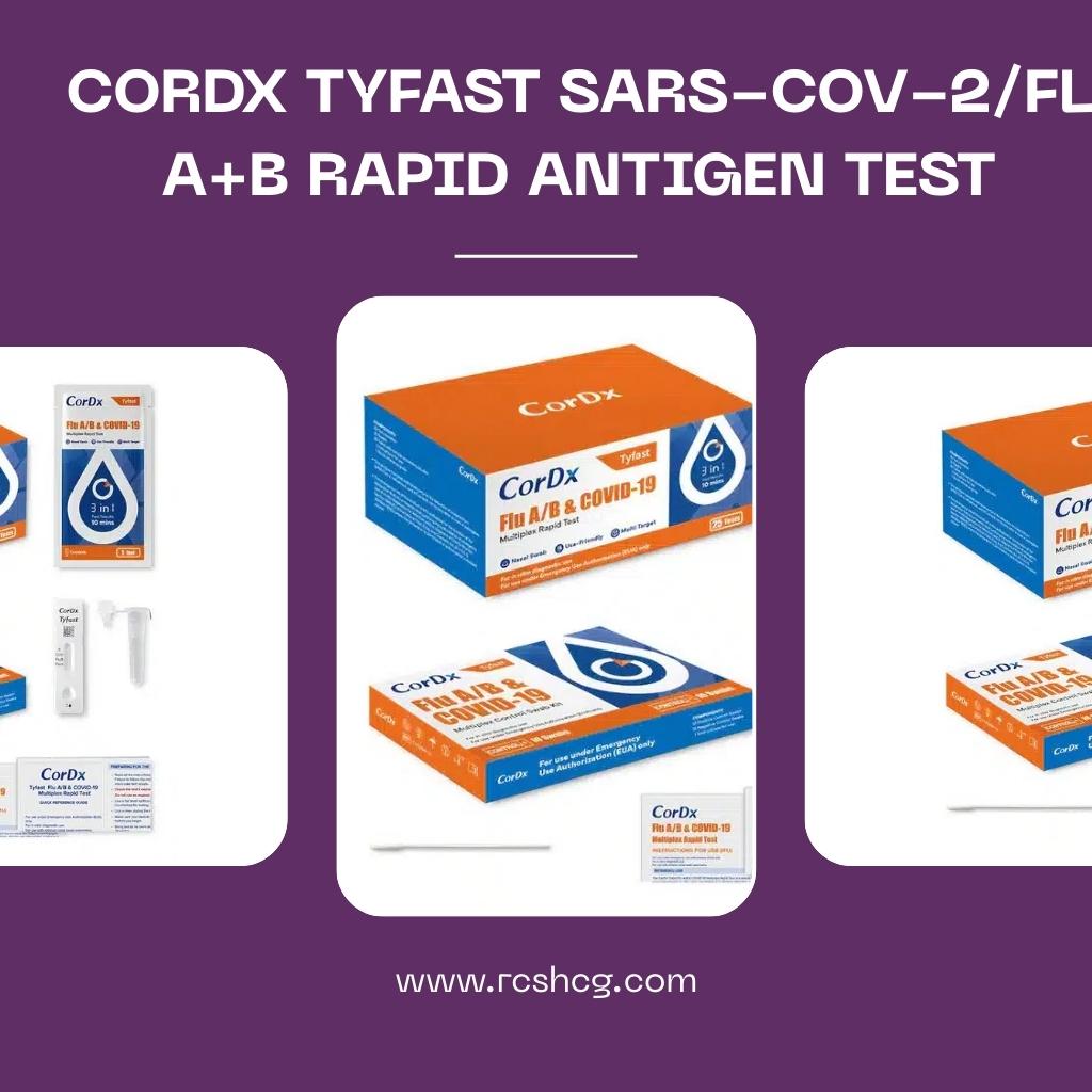 CorDx Tyfast SARS-CoV-2/Flu A+B Rapid Antigen Point-of-Care Test is a lateral flow immunoassay intended for in vitro rapid, simultaneous qualitative detection and differentiation of nucleocapsid antigen from SARS-CoV-2, influenza A and influenza B directly from anterior nasal swab specimens obtained from patients who are suspected of COVID-19 by their healthcare provider, within the first five days of onset of symptoms.