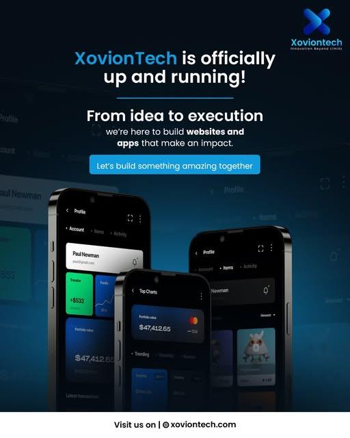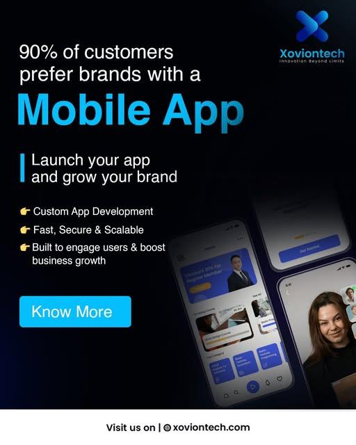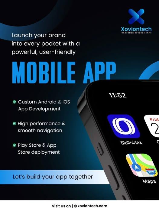 Xoviontech is a AI-driven technology company specializing in custom Web and mobile app development for startups, small businesses, and enterprises. We transform innovative ideas into powerful digital solutions that drive growth, efficiency, and user engagement. Our expert team designs and develops scalable web applications, Android and iOS mobile apps, and enterprise-grade software tailored to your business goals. From concept and UI/UX design to development, testing, and deployment, Xoviontech delivers end-to-end technology solutions with a strong focus on performance, security, and reliability.We work with the latest technologies to build fast, user-friendly, and future-ready digital products. Whether you need a business app, e-commerce platform, or custom software solution, Xoviontech is your trusted partner for innovation and digital success.